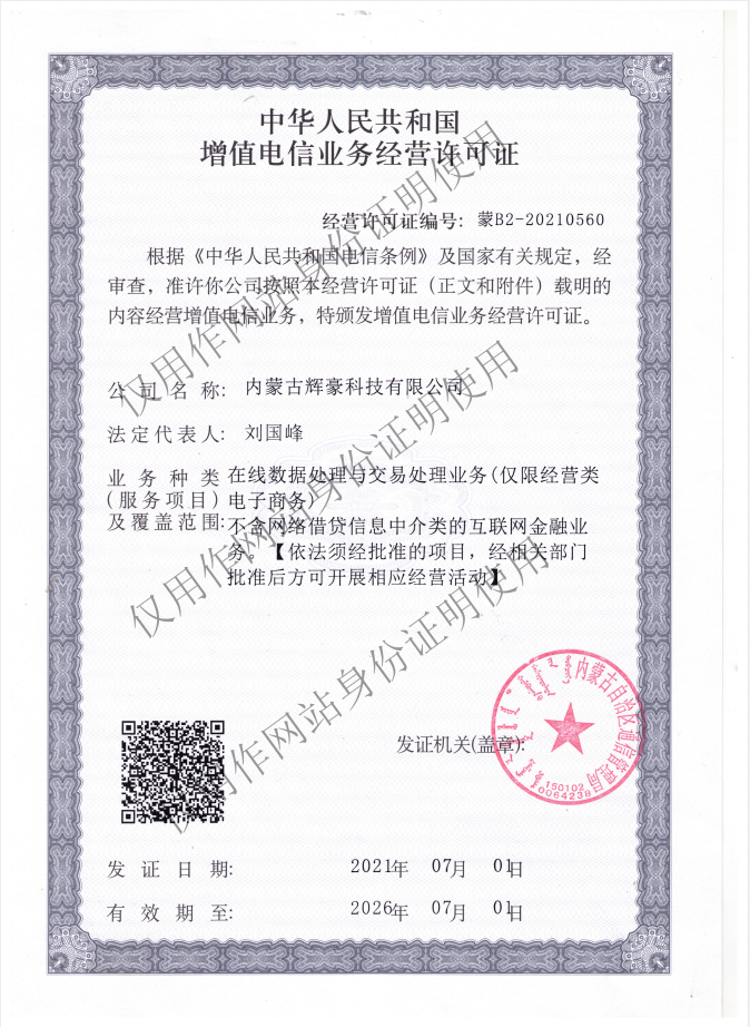本网站是指域名为“www.nmghhkj.com”的网站。是由公司内蒙古辉豪科技有限公司开发、运营的电子商务平台。